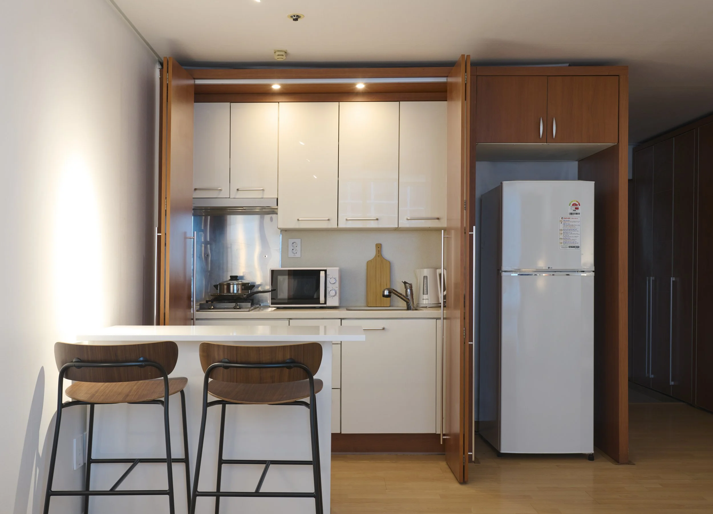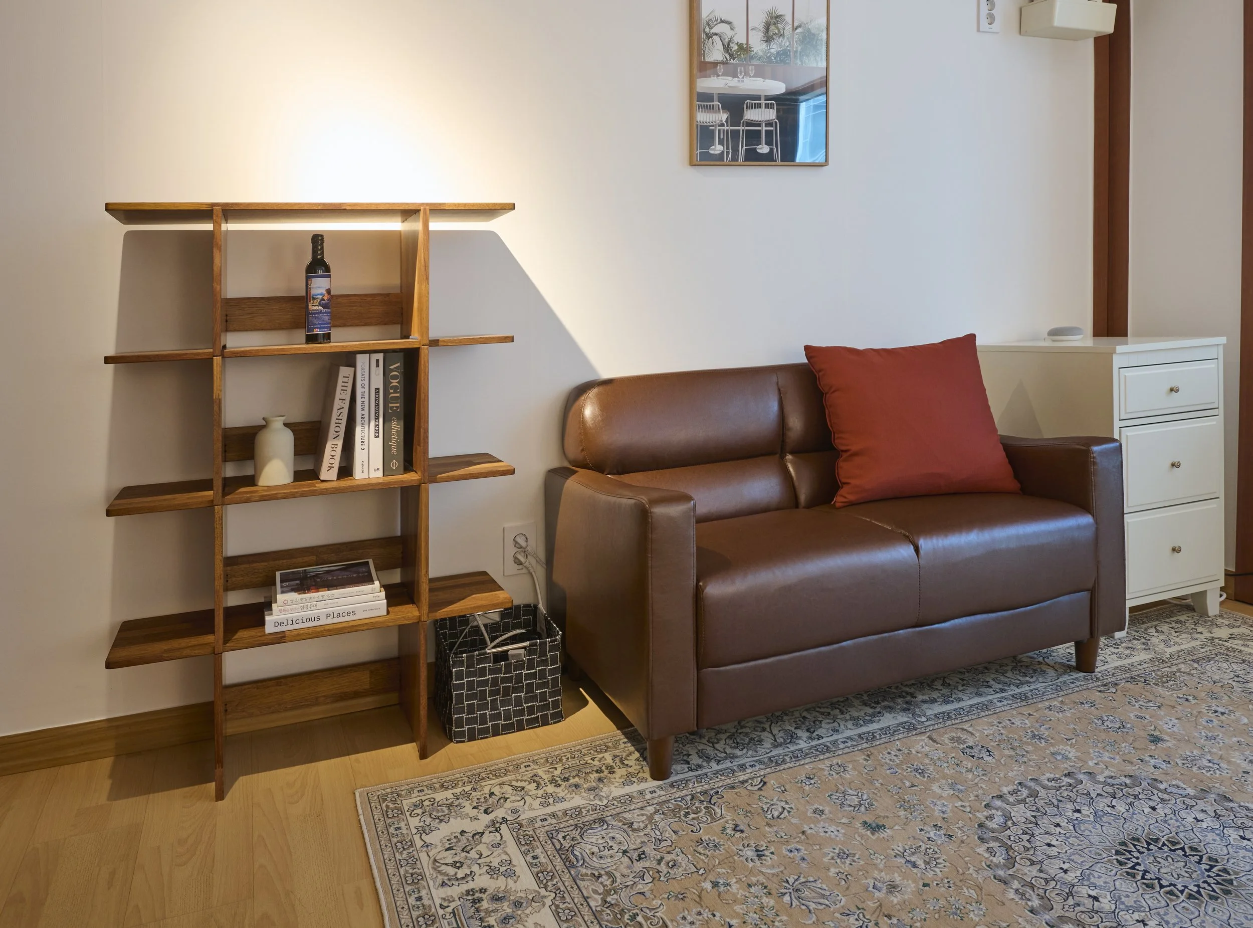 나에게 집중할 수 있는 공간이에요. 서재에 온 것 같은 안정감을 느낄 수 있으며 책장이 마련되어 있어 좋아하는 책과 오브제로 나만의 취향을 담을 수 있답니다.