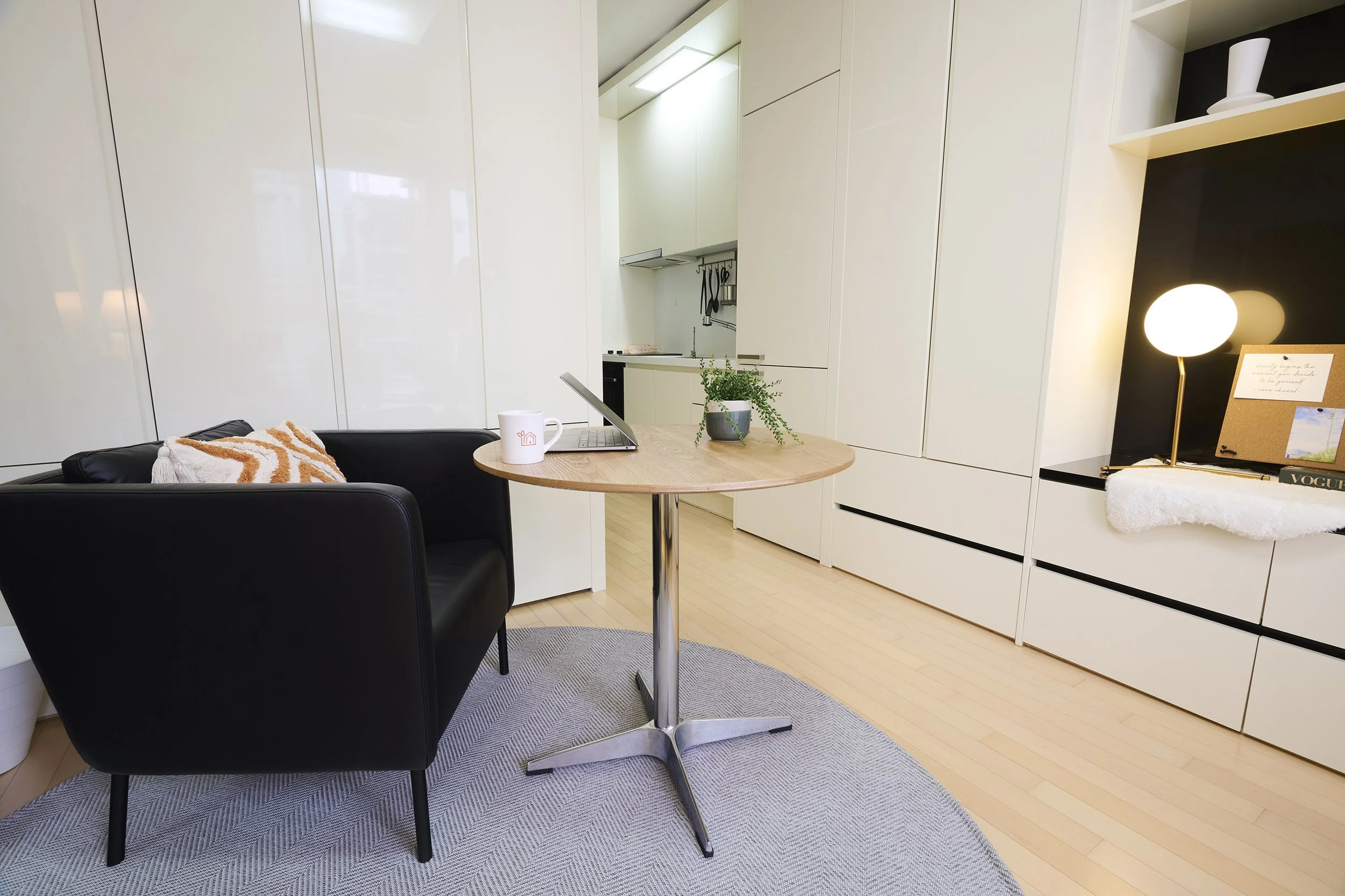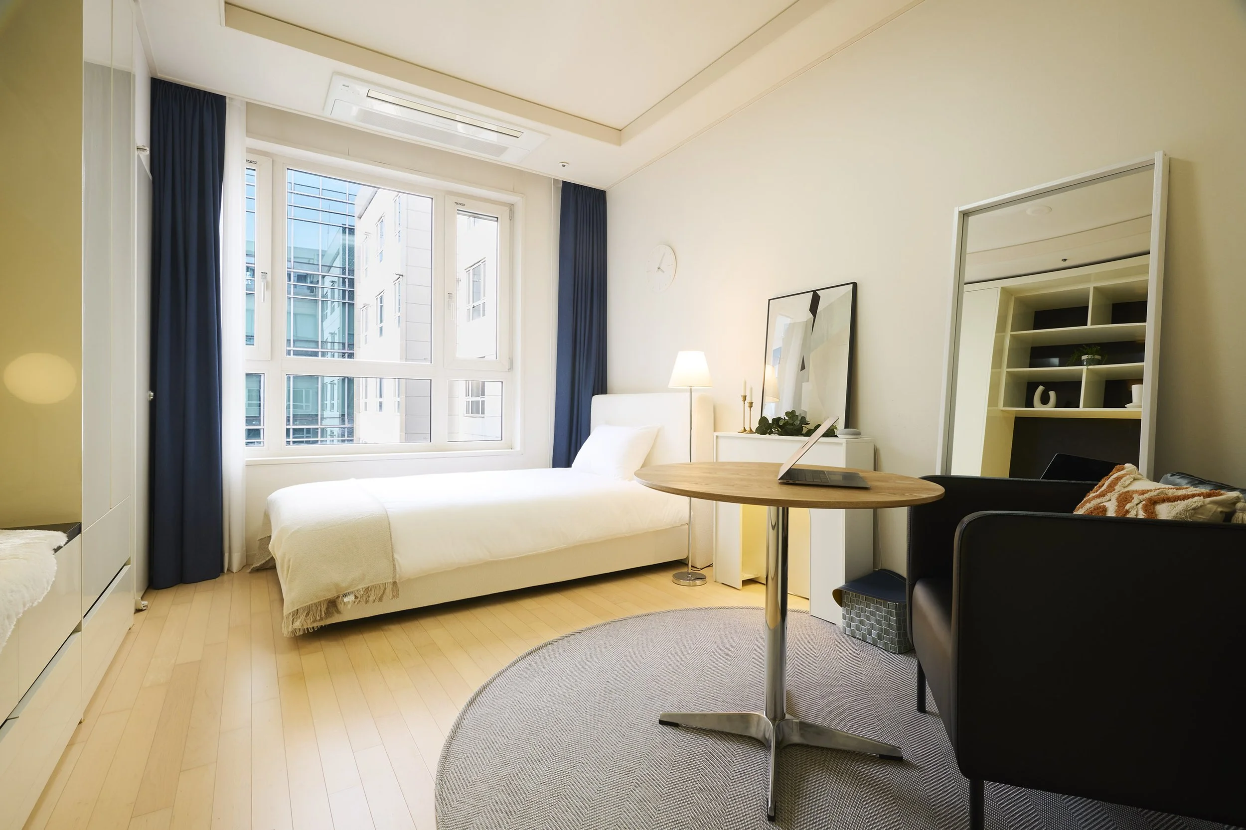 환하고 심플한 곳이에요. 수납공간이 넉넉해서 깔끔하게 공간을 유지할 수 있어 워커홀릭 미니멀리스트에게 어울리는 곳이에요. 소파에 앉아 커피를 마시며 하루를 시작해 보세요.