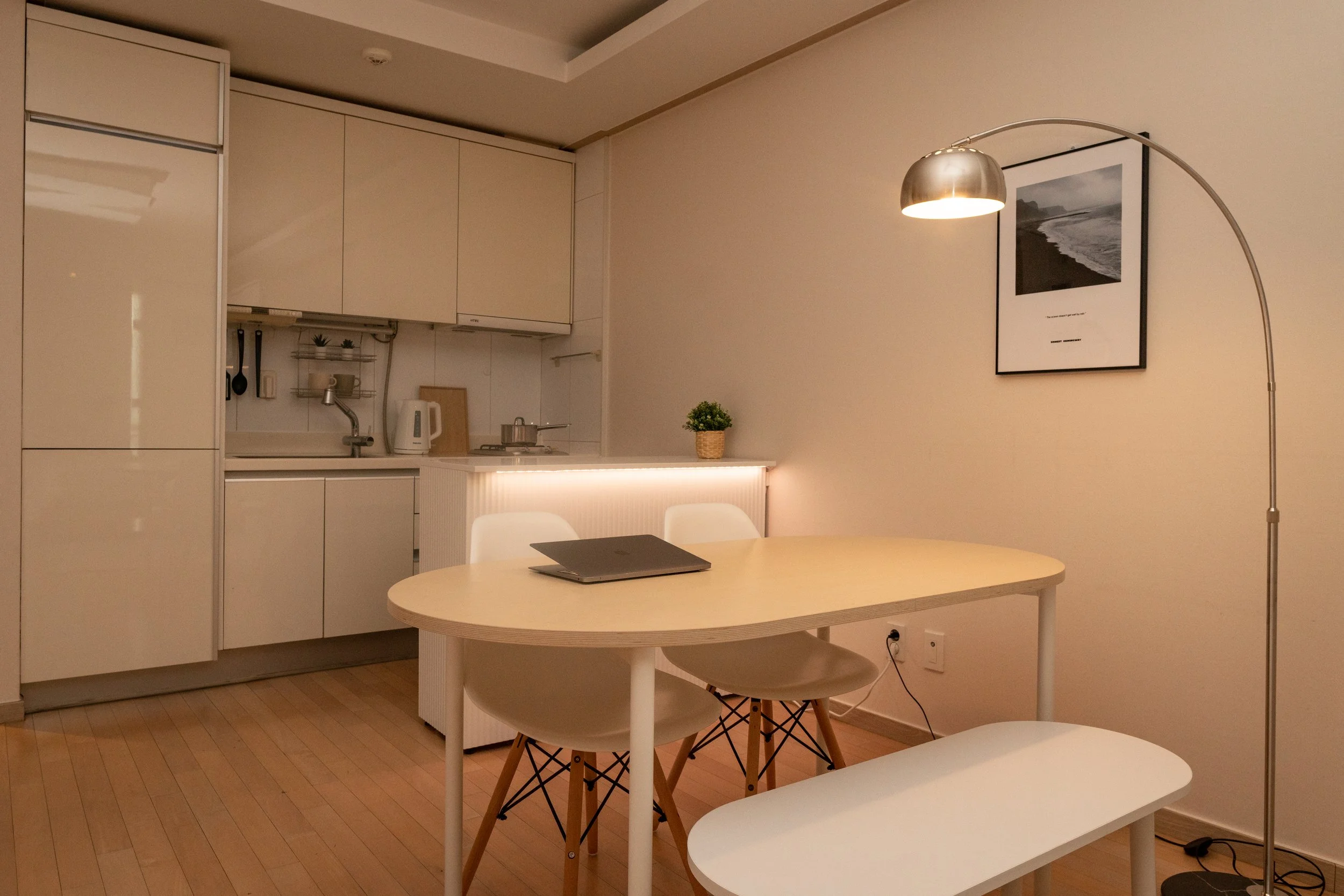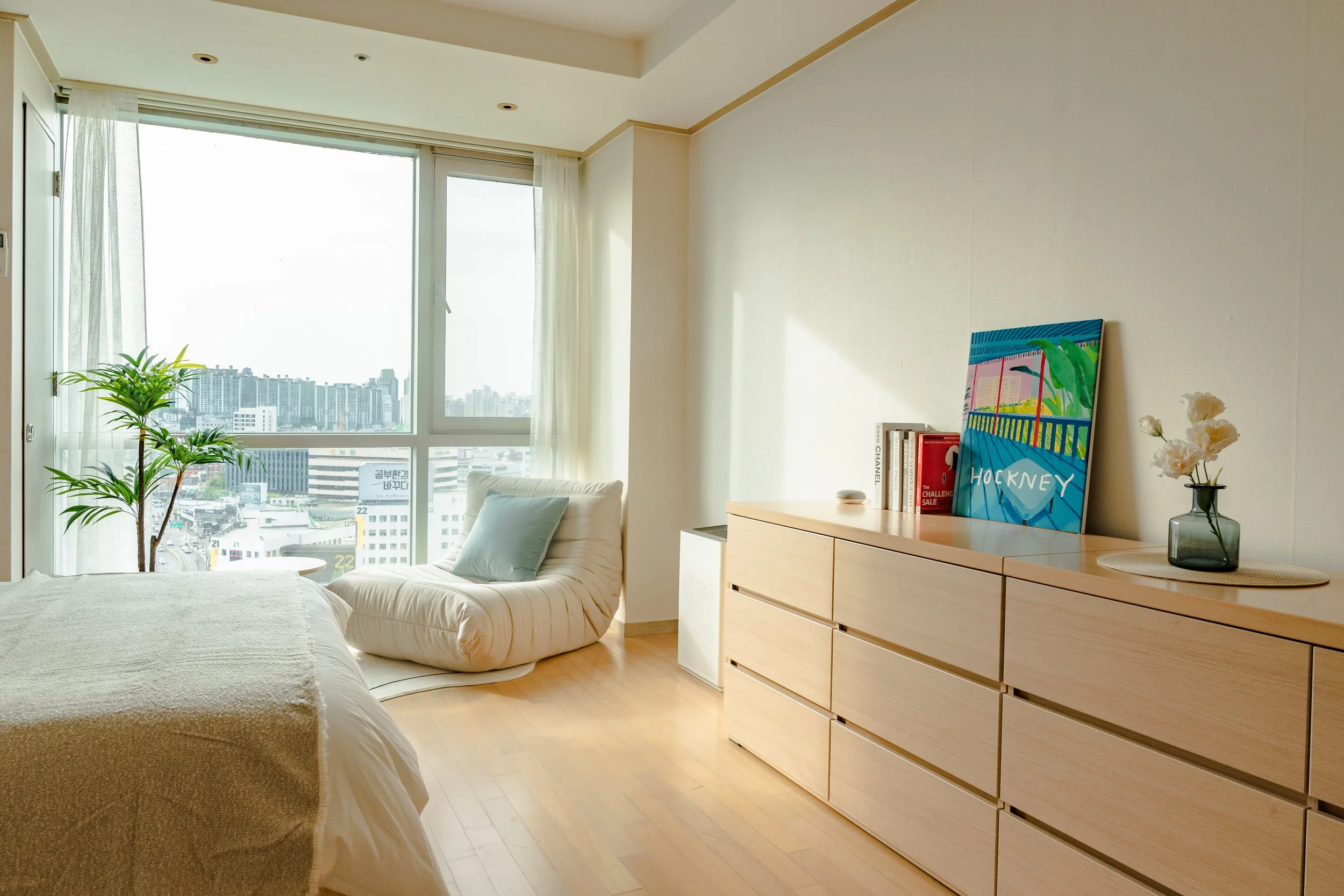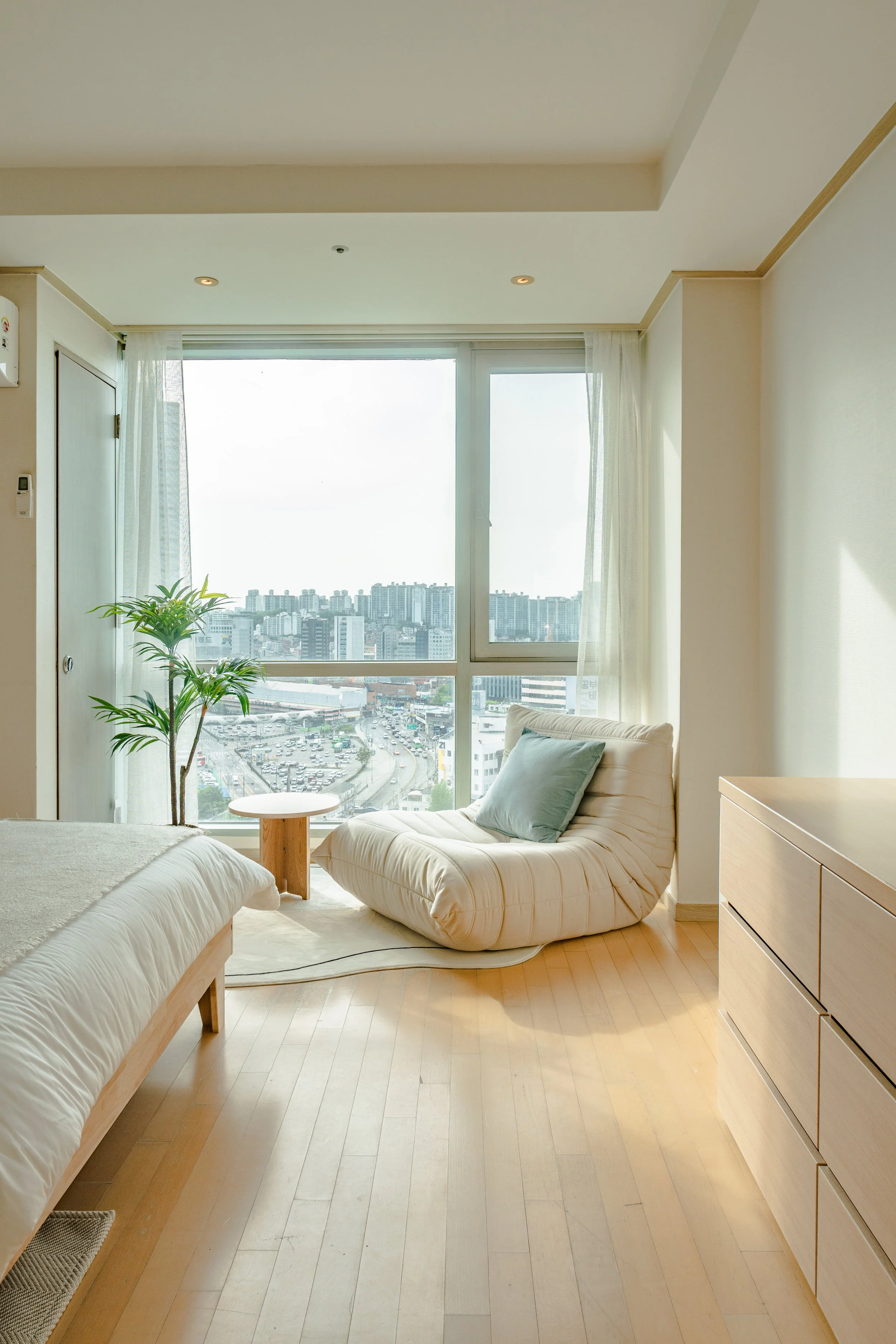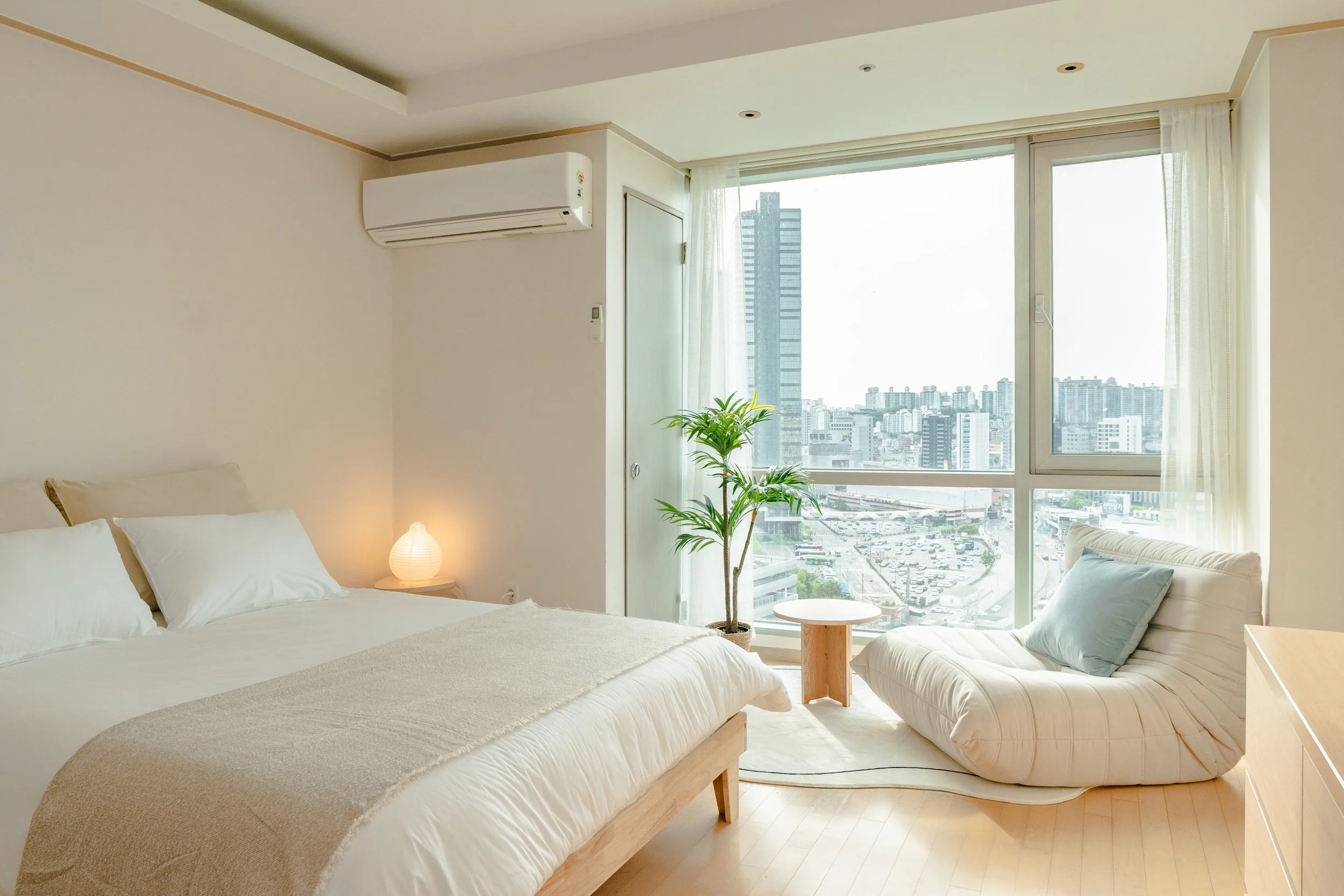마음이 차분해지고 따스함이 느껴지는 곳이에요. 힐링 공간과 업무 공간이 구분되어 있어 오롯이 나에게 집중할 수 있어요. 창가쪽 소파에 앉아 명상을 하거나 잠시 생각에 잠겨보세요.
