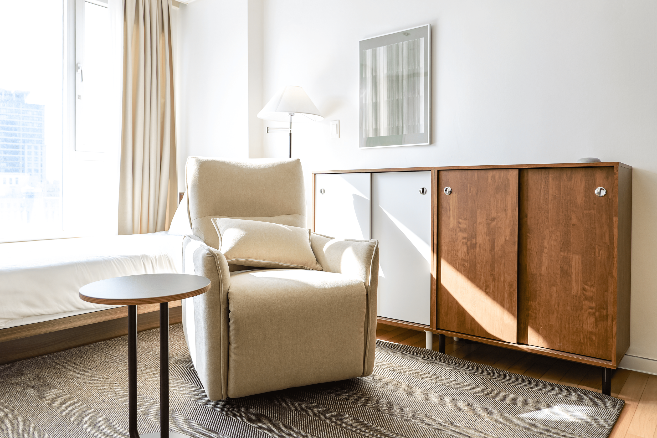 따뜻한 티 한잔의 여유가 있는 공간입니다. 푹신한 리클라이너 소파에 앉아 은은한 캐모마일 티 한 잔을 즐겨보는 건 어떨까요?