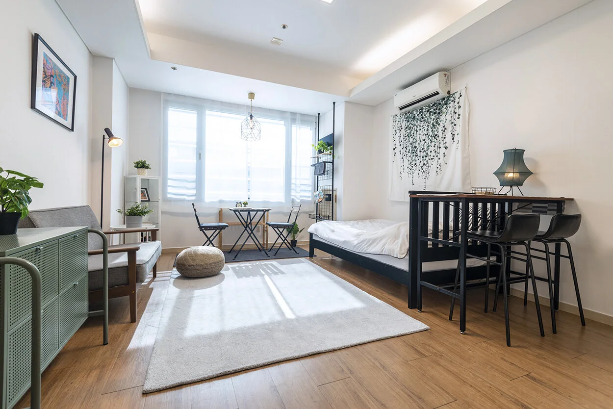 분주한 아침 테라스에 놓인 테이블에서 커피한잔의 여유를 즐겨보세요. 창 넘어 보이는 강남의 전망이 당신의 하루를 응원 합니다. 안락한 소파와 침대가 주는 완전한 휴식은 하루의 피로를 풀어줄 거예요.